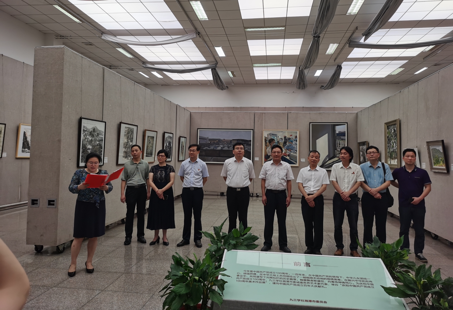 2021年6月29日上午10点,“九三学社湘潭市委庆祝中国共产党成立100周年美术作品展”在湖南科技大学艺术学院作品展示大厅开幕。湘潭市政协副主席郭源君、胡振湘,中共湘潭市委统战部副部长周纪青,九三学社市委主委肖冬梅,雨湖区政协副主席王献志,湖南科技大学艺术学院党委书记曾志东、院长李毅松,湖南科技大学建筑与艺术设计学院院长吴志军,九三学社市委专职副主委王琴华,九三学社市委副主委谭貌,以及知名画家曾景祥、刘新华、赵湘学、刘坚、陈志强、胡瑶等出席了开幕式。