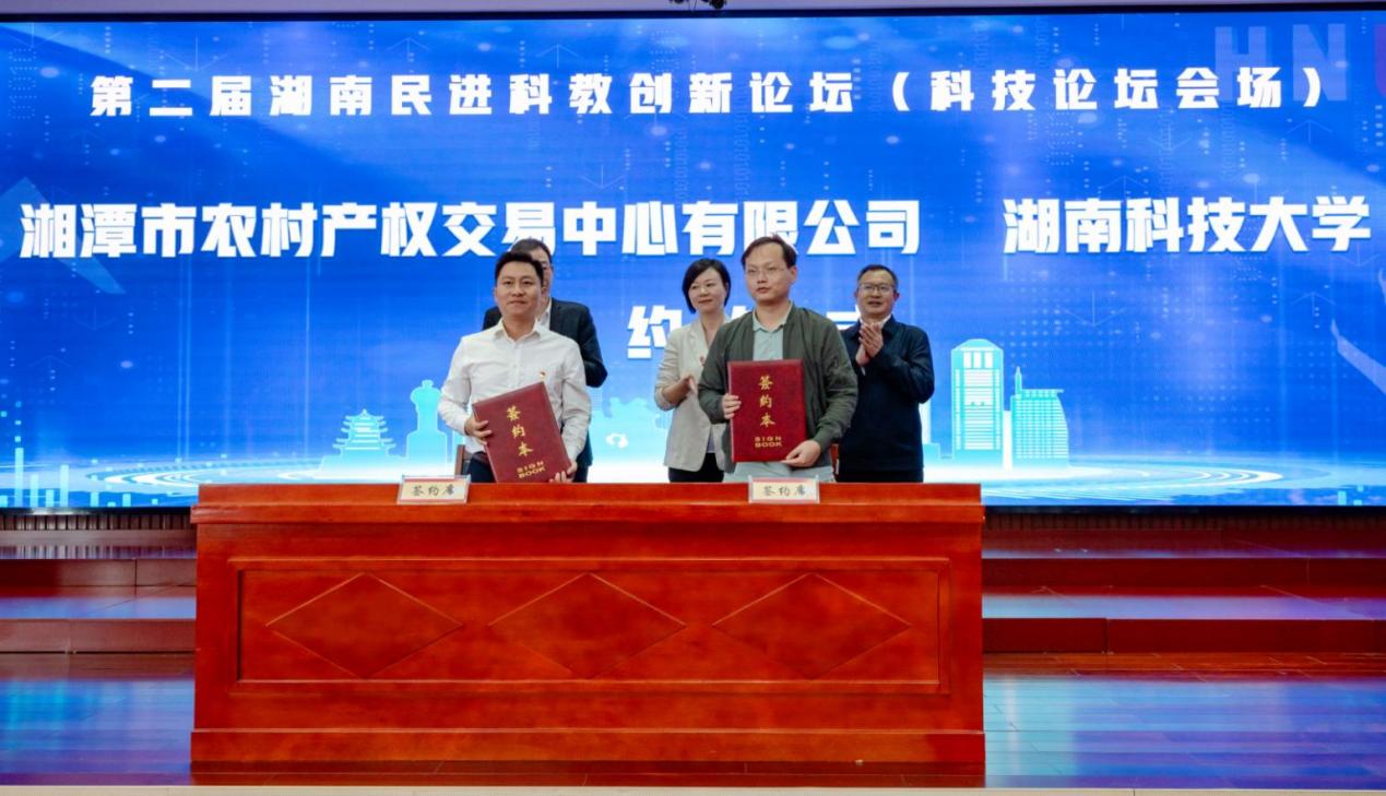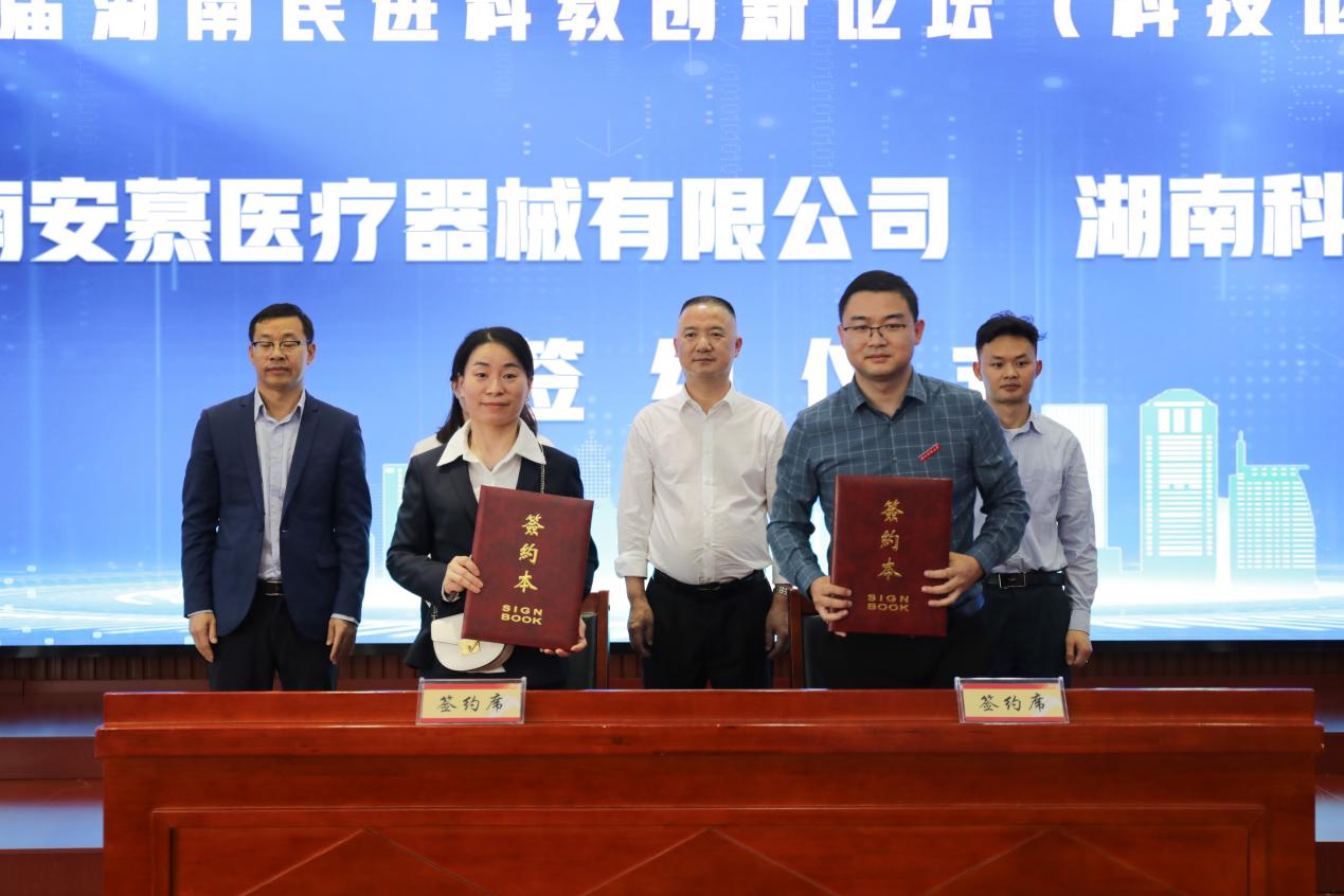 在本次会议上,我校圆满地完成了与湘潭市农村产权交易中心有限公司、湖南安慕医疗器械有限公司及利欧集团湖南泵业有限公司之间的签约仪式,并顺利推进了成果转让等一系列合作项目。学校高度重视产学研合作及产教融合相关工作,致力于加速科技创新步伐,积极推进校企合作进程,促进科研成果的有效转化,旨在更好地助力地方经济实现高质量发展,并已取得显著成效。