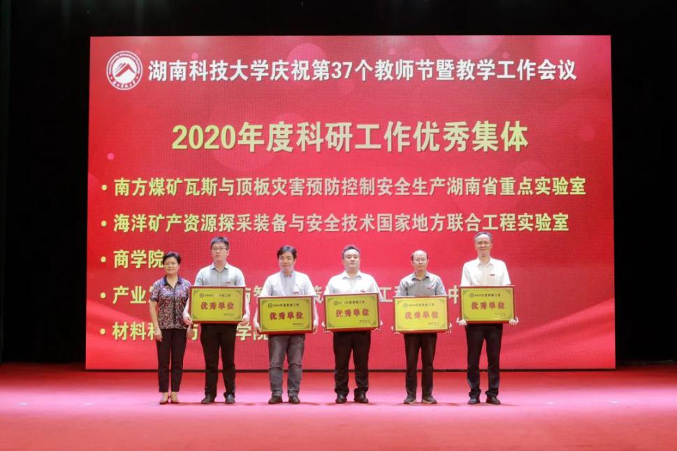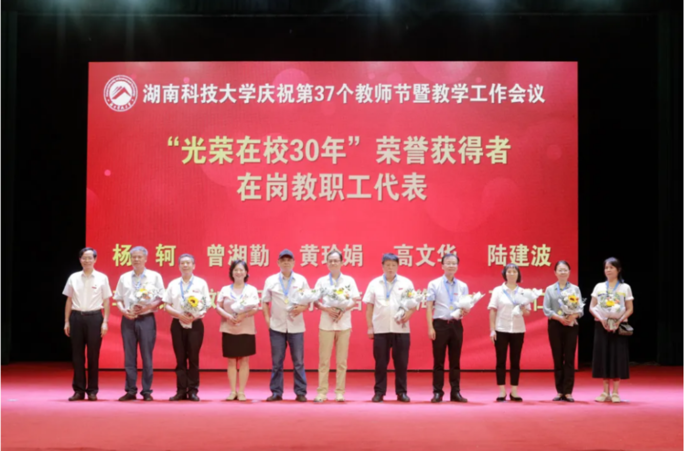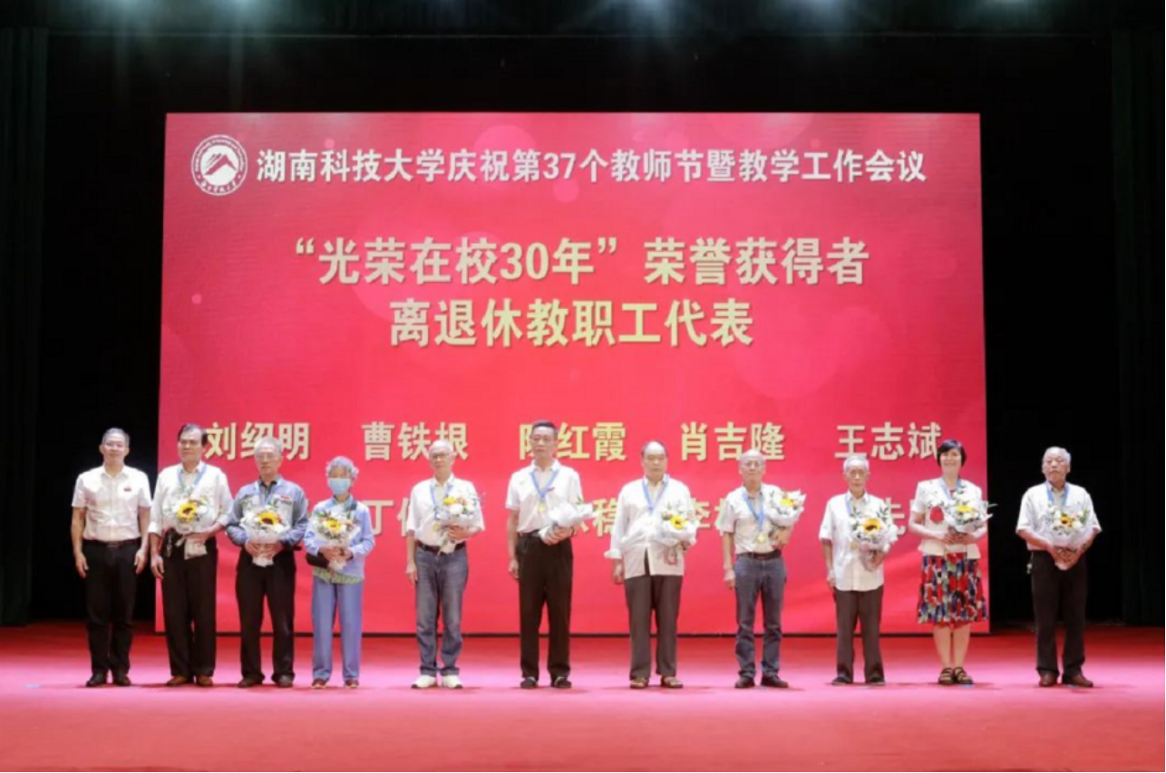 下午3点,俱乐部国歌嘹亮,气氛庄重热烈。湖南科技大学庆祝第37个教师节暨2021年教学工作会议举行,全体在校校领导出席,“光荣在校30年”荣誉获得者代表,获奖代表,中层干部,各单位、教学院教职工代表,校本科教学督导团成员,校友代表,学生代表与会。校党委书记唐亚阳发表重要讲话,校长朱川曲主持大会,校党委副书记刘友金宣布表彰决定,副校长贺泽龙作教学工作报告。