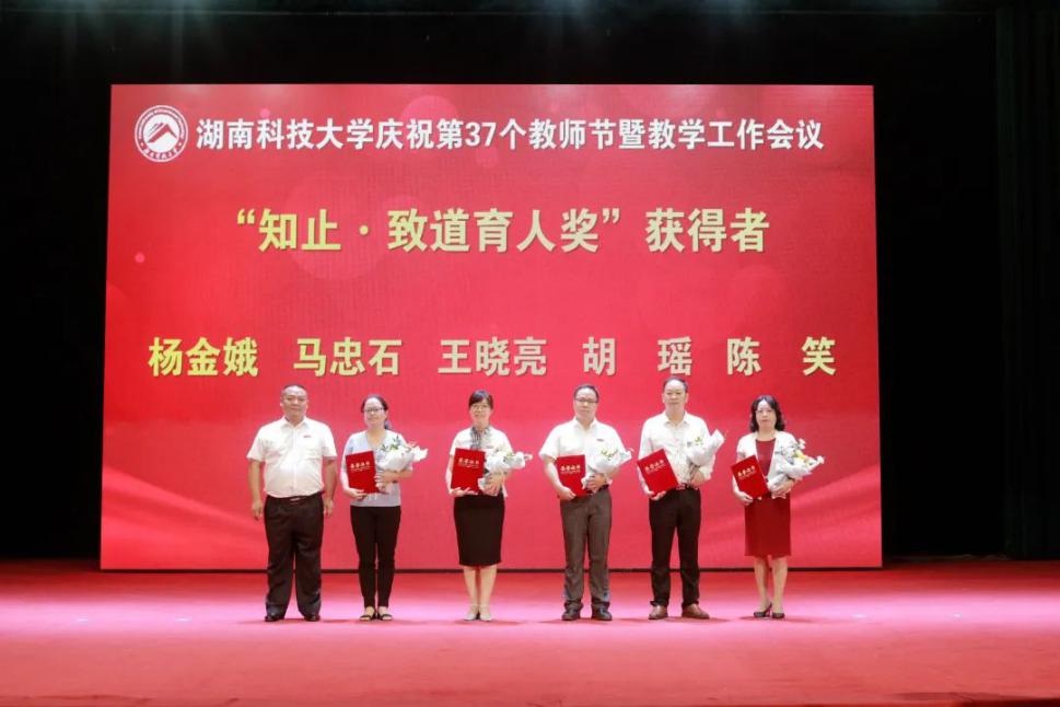 在本次表彰大会上,九三学社湖南科技大学委员会共有30余人次获六类项目的集体和个人表彰。陈安华、郭源君、彭文斌、尹铁开、李建生、李启芝、张丽萍、刘小娟、谢宜辰、潘钧颂、肖立媛、李寿存、袁克俭、贺锋、金身佳、沈绍根、廖君湘、肖秋国、唐宇辉、李白雅、尚巾斌等20余人获“光荣在校30年”荣誉奖章;胡瑶荣获首届“知止•致道育人奖”;李白雅、肖秋国荣获“教学奉献奖”;李川、方小青分获“课程思政教学比赛”本部组和潇湘组一等奖;刘灯明荣获“优秀青年教师奖”。另外,海洋矿产资源探采装备与安全技术国家地方联合工程实验室获得“科研工作优秀集体”,张小平作为单位负责人上台领奖。