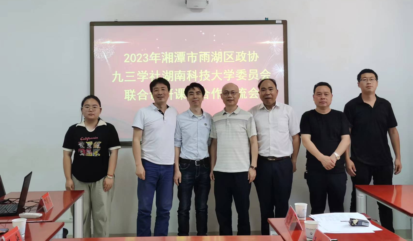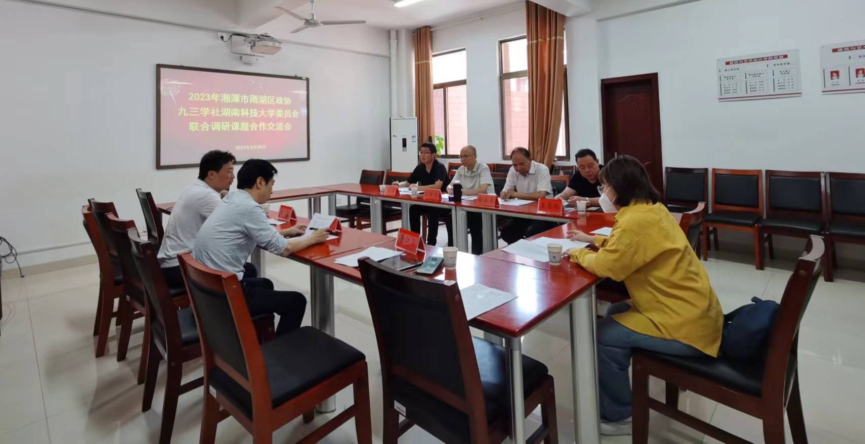 2023年5月26日,雨湖区政协副主席王跃龙带队来我校,与九三学社科大委员会商讨关于“粮食生产与安全视角下乡村治理”的调研活动。