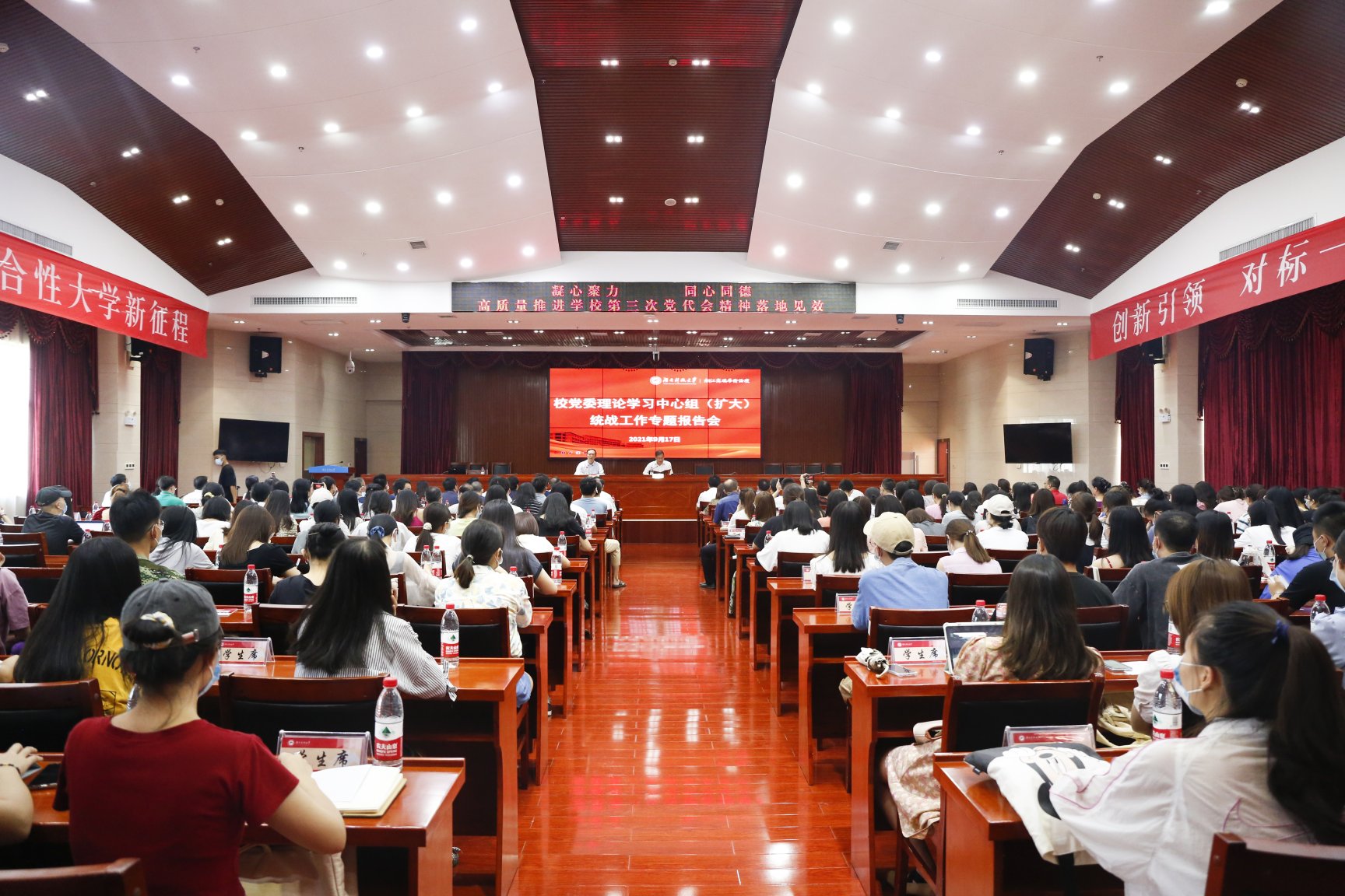 ▲“湘江高端学术论坛”讲座暨校党委理论学习中心组(扩大)统战工作专题报告会举行